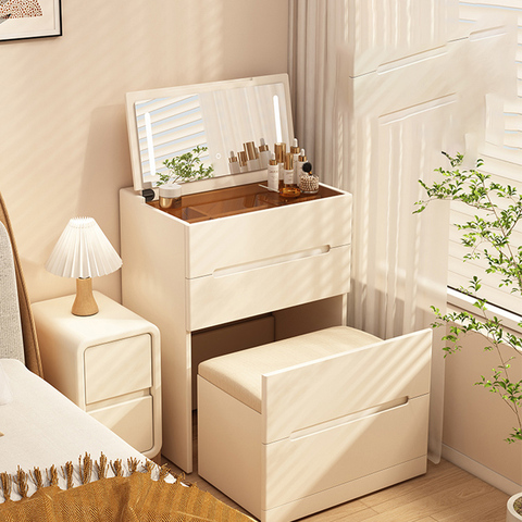 Konsol Modern basit makyaj soyunma tablo ışıklı ayna küçük yatak odası ve çekmeceler ile Set çok fonksiyonlu makyaj