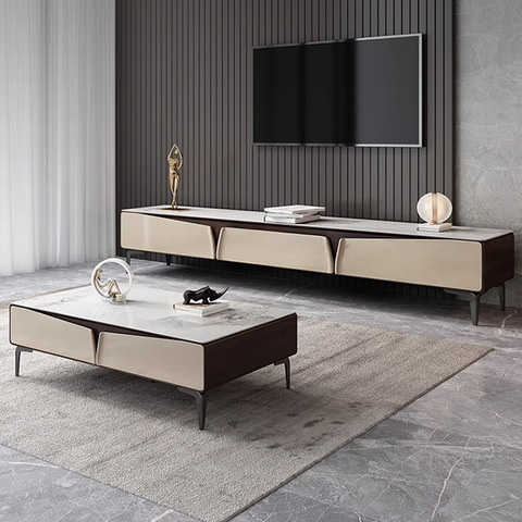 Işık lüks Modern Tv standı sehpa oturma odası mobilya kaya plaka sehpa çekmeceli